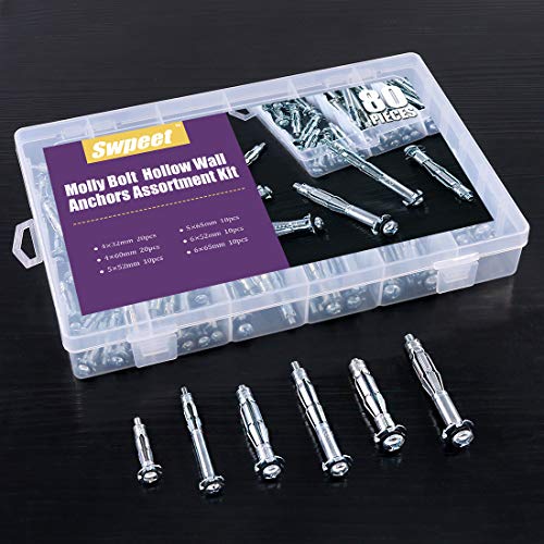 Specification: 80Pcs Molly Bolt Assortment Kit, Hollow Wall Anchors Perfect for Secure Drywall, Sheetrock and Paneling to Walls or…