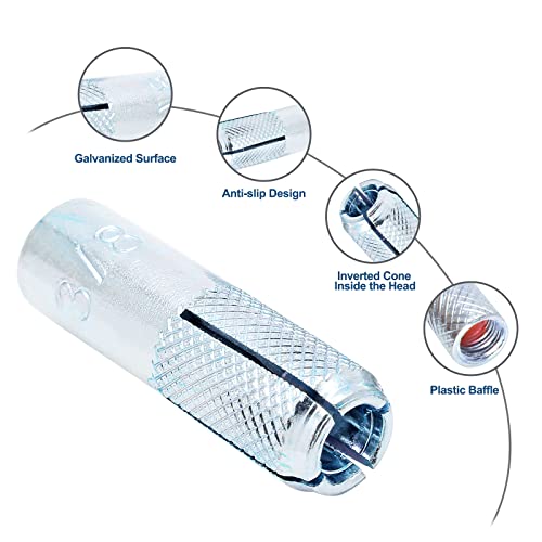 Specification: Biaungdo 3/8″ Inch Drop-In Anchors, Zinc Plated Carbon Steel Internally Threaded Drop in Anchor, Pack of 12