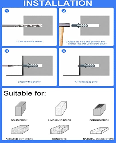 Premium Quality :The plastic wall anchors are built with high-quality brand-new materials to ensure high strength,wear resistance,corrosion resistance,rust resistance and excellent oxidation resistance