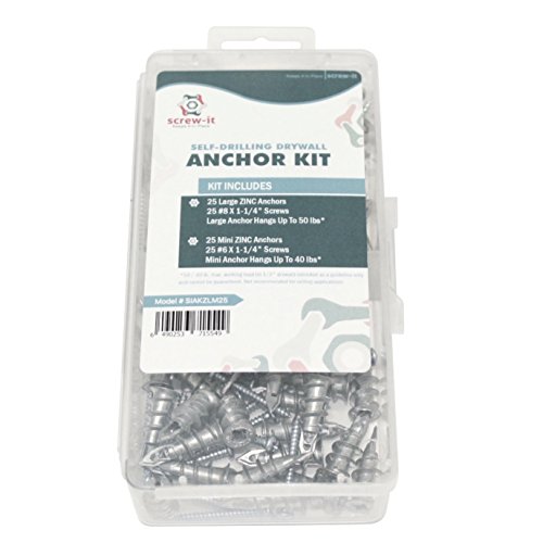 Specification: Self Drilling Drywall/Hollow-Wall Anchor Kit with Screws, 100 Pieces All Together, Kit Includes 2 Different Sizes, Large…